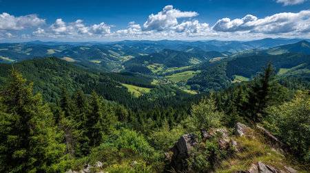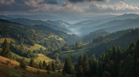Serene Carpathian Landscape: A Breathtaking Panorama of Rolling Hills and Verdant Forests