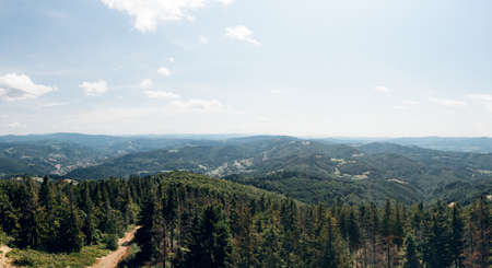 Breathtaking view of hills covered with coniferous forest. Landscape, nature, trees. Rogla, Slovenia.
