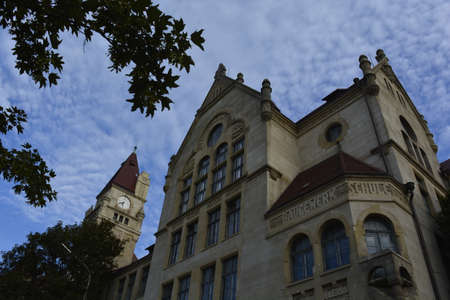 A low angle shot of a large building in Germany under a blue sky
