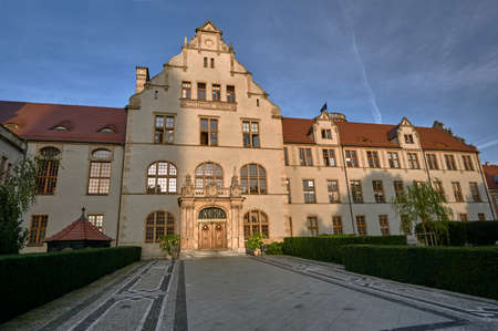 Romantic Alte Hofhaltung (Old courtyard), a former residence of the bishops now Historic museum, Bamberg Old Town, Bavaria, Germany, Europe. Bamberg is one of most popular travel destinations in Germany.