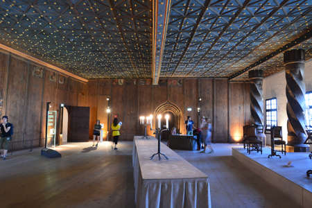 Coronation Hall with Golden Throne in Old Royal Palace Prague Castle.