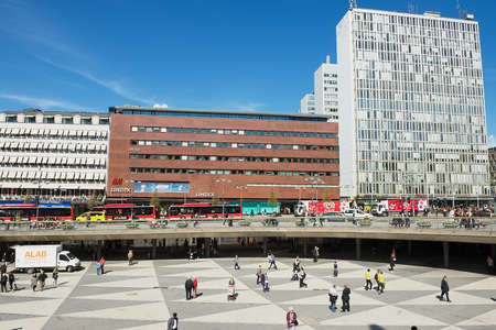 Stockholm, Sweden, April 28, 2011 - People walk by the Sergels square in Stockholm, Sweden.