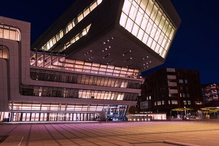 VIENNA, AUSTRIA - OCTOBER, 2019: Famous modern building of Library and Learning Center in Vienna University of Economics and Business by Zaha Hadid, evening view