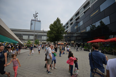Vienna, Austria - February 14, 2023: Modern architecture of the Australian capital Vienna near the Central Station