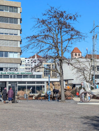 Pforzheim Germany Januar Vibrant city plaza teeming with individuals observing sunrise