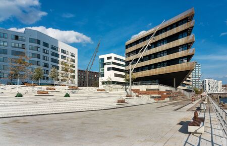 Oslo, Norway. Residential Multi-storey Houses In Aker Brygge District In Summer Evening. Famous And Popular Place.