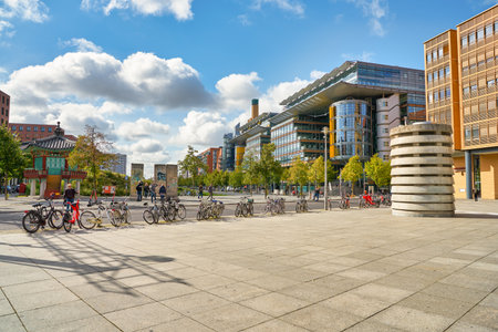 Morning cityscape view on the modern financial district near the Crown Prince bridge in Berlin city