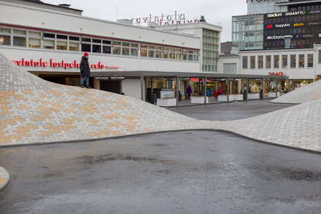 Helsinki, Finland - January 17, 2020: Fragment of the architectural complex Amos Rex in the center of Helsinki