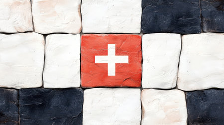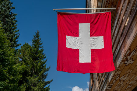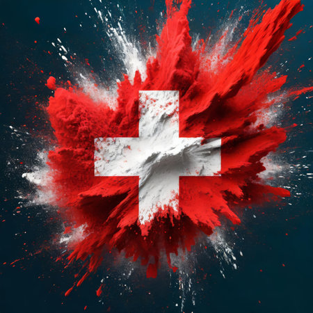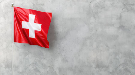 Vibrant image showcasing the Switzerland flag featuring a striking red background and a prominent white cross, emphasizing national identity and pride.