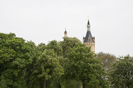 SCHWERIN, GERMANY - 03 May 2014 View of town from castle embankment 03 May in Schwerin