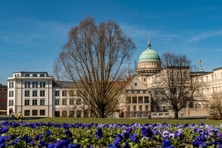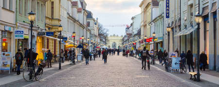 POTSDAM, GERMANY, MARCH 11, 2015: main alley in potsdam - brandenburger strasse. At one end is situated brandenburger tor and at the second saint peter and paul church.