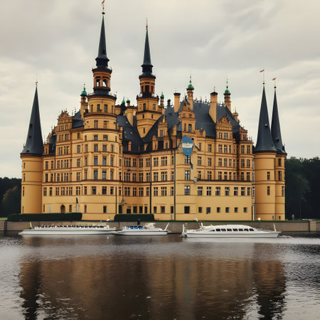 Schwerin, Germany - Sept 10, 2017: Schwerin Caste and tour boats in Schwerin, Germany.