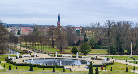 POTSDAM, GERMANY, MARCH 11, 2015: people are strolling among gardens and fountains adjacent to the sanssouci palace in potsdam, germany.