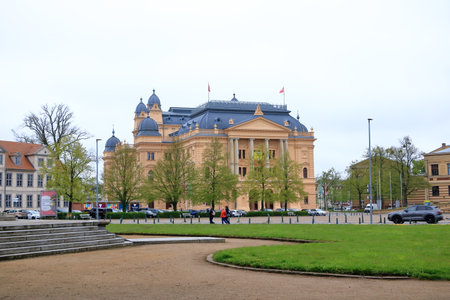 May 06 2023 - Schwerin, Mecklenburg-Vorpommern in Germany: the state theater near the state museum in Schwerin