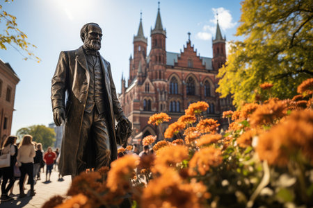 Schwerin, Germany. Bust of Heinrich Schliemann, a German businessman and a pioneer in the field of archaeology, near the Pfaffenteich pond lake