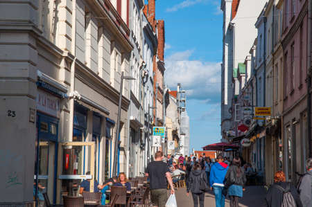 Lubeck Germany - May 25. 2017: People enjoying the day in a small city street