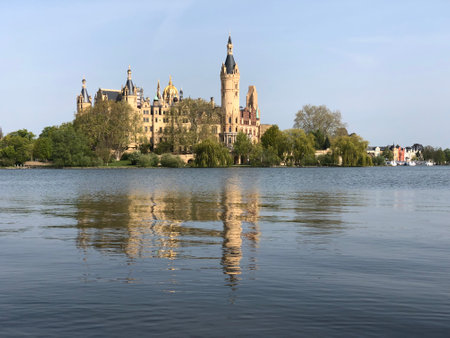 The Schwerin Castle shines in the sunshine when the weather is fine