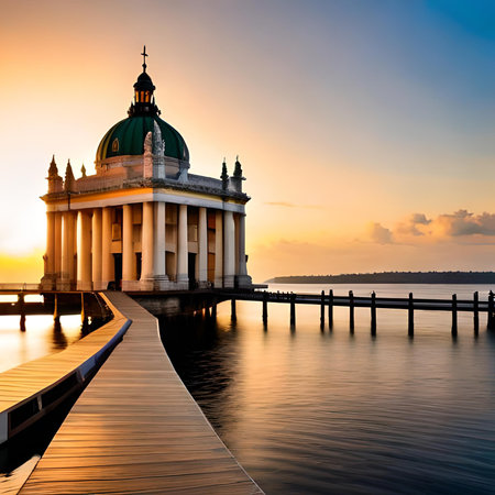 A striking image of a stately government building, featuring a large dome and columns, reflected beautifully in a serene pool in front.. AI Generation