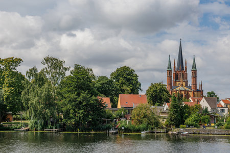 SCHWERIN, GERMANY - 03 May 2014 View of town from castle embankment 03 May in Schwerin