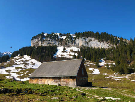 Rural traditional architecture with livestock farms in the Appenzellerland region and on the Alpstein mountain range - Canton of Appenzell Innerrhoden (AI), Switzerland