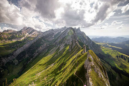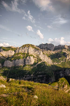 Alpine peak Altenalp in the Alpstein mountain range - Canton of Appenzell Innerrhoden AI , Switzerland. cloudy weather