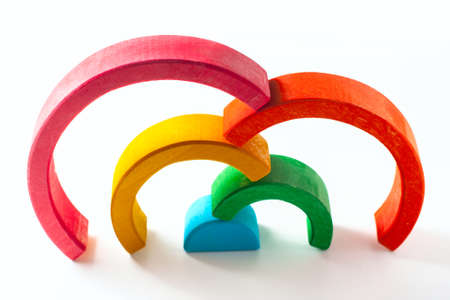 Rainbow, multicolored wooden eco toy. Isolated on white