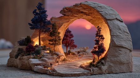 Miniature of a garden in the shape of a stone arch.