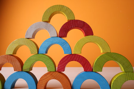 Vibrant and colorful rainbow blocks create a playful building structure, perfect for representing a bright and optimistic future.