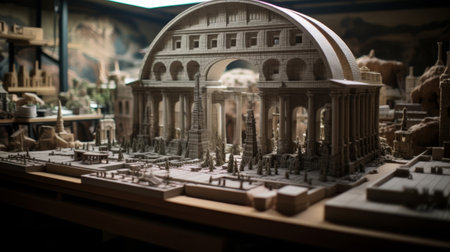 Workshop scene of Roman architect crafting building models