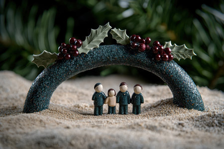 Festive holiday arch with holly and berries