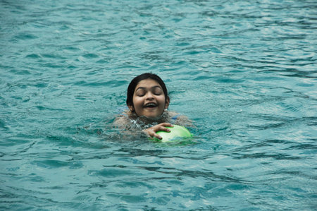 Jakarta, Indonesia - 10.11.2018 A theacher is training students to swim