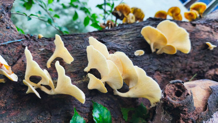 Exploring the vibrant textures of bracket fungus in a forest environment
