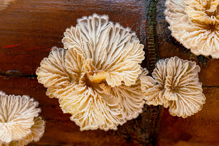 Exploring the intricate textures and varied colors of porous mushroom stems