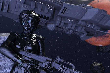 Soul of astronaut. 3D sci-fi art.