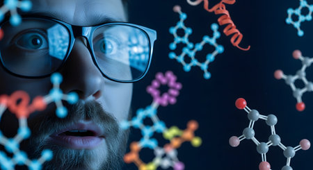 Detailed exploration of molecular structures showing their bonds and interactions in a contemporary scientific environment with a focus on precision.
