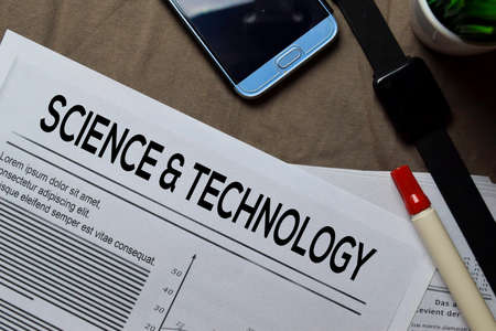 Science and Technology text in headline isolated on brown background. Newspaper concept