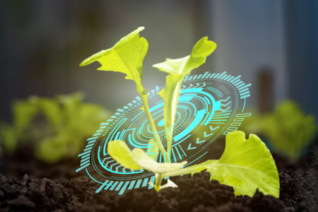 Smart agriculture: scientist monitoring plant growth with advanced holographic technology