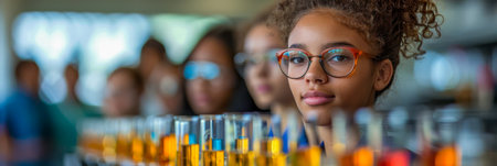 Focused Students in Science Lab with Test Tubes.