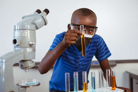 Schoolboy working with reagents