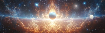 A breathtaking cosmic scene showcasing vibrant nebulae, diverse celestial bodies, and brilliant stars. This artistic rendering captures the beauty and mystery of the universe in stunning detail.