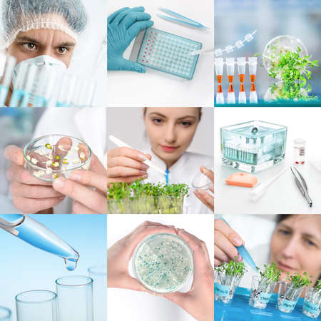 Experimental science and modern biological technology, set of matching pictures for your leaflet or webpage design