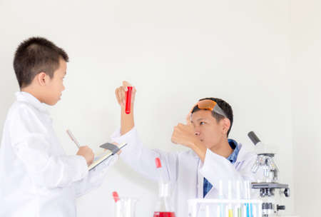 Children science concept, Portrait of teenager students educate in laboratory or classroom about chemical solution