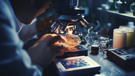 Young examining samples in a lab, symbolizing medical research and discovery.