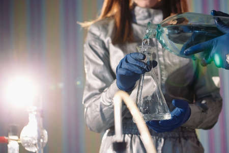 Experiments in a chemistry lab. conducting an experiment in the laboratory