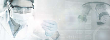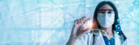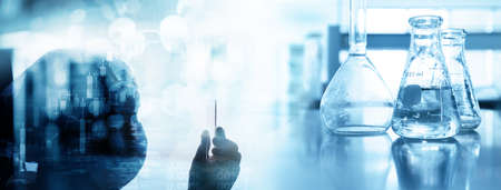 Genetic research and Biotech science Concept. Human Biology and pharmaceutical technology on laboratory background.