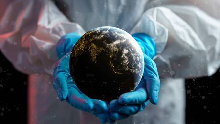 Doctor holding blue earth, Virus Covid-19 concept. Elements of this image furnished by NASA