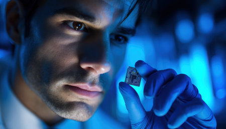 A biohacker performing an experiment to implant a microchip for tracking health and fitness metrics
