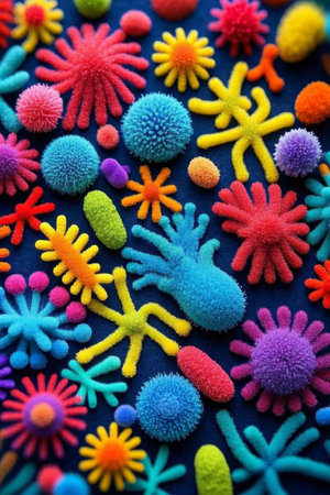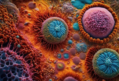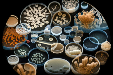 microbial culture, magnified view of bacteria and other microorganisms, created with generative ai