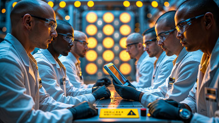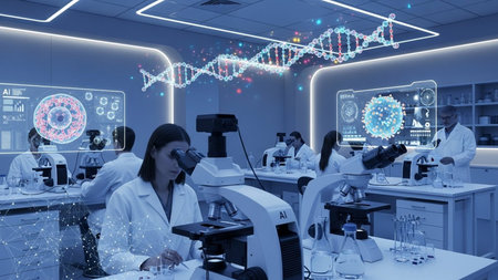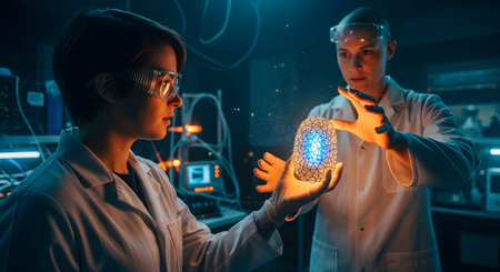 Scientists collaborate in a high-tech lab environment during an intense research experiment