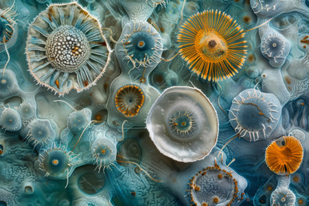 Dive into a stunning microscopic view showcasing vibrant microorganisms in an aquatic setting. This image reveals the intricacies of diverse life forms through scientific observation.